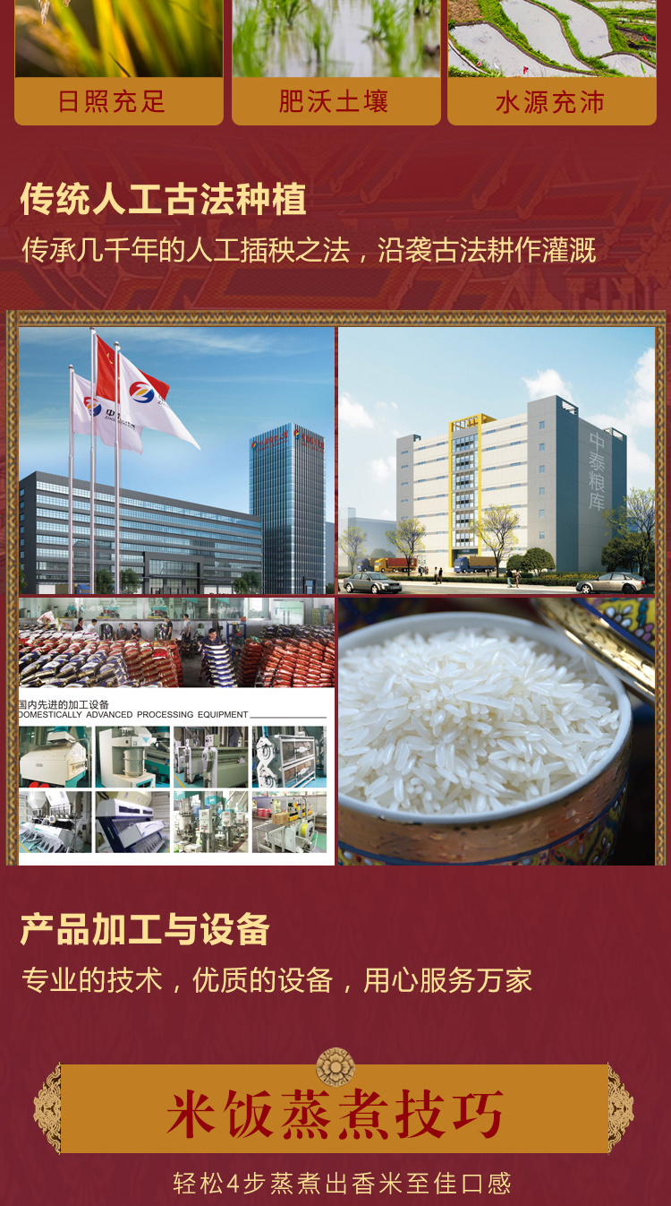 中泰米业是一家集粮食加工、销售、粮油进出口、贸易、仓储、物流为一体的民营企业。公司下辖七个部门、五个分子公司。引进全套瑞士布勒公司优质大米生产工艺和设备,现有大米年生产能力15万吨,仓储能力3万吨。公司主导产品"泰皇"牌系列大米远销北京、上海、重庆等30多个大中城市,建立了良好的物流和销售服务网络。